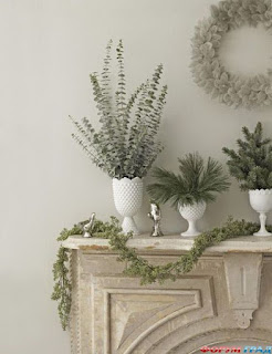 White milk glass, which I've blogged about before, is also great when filled with greens: